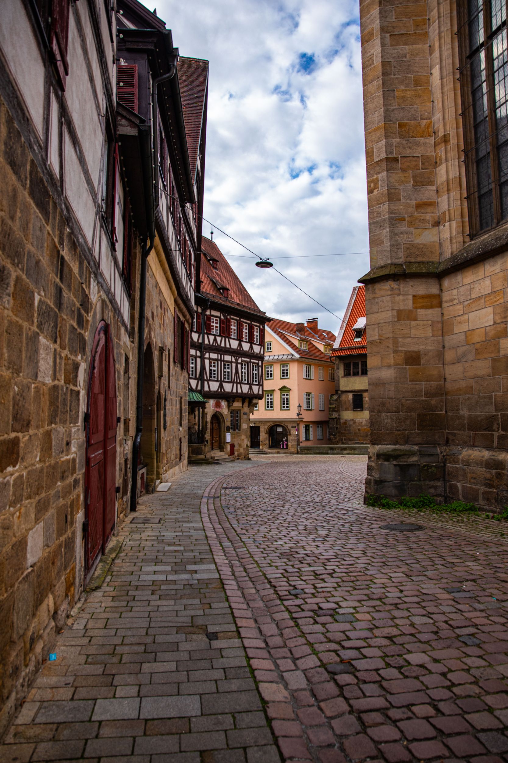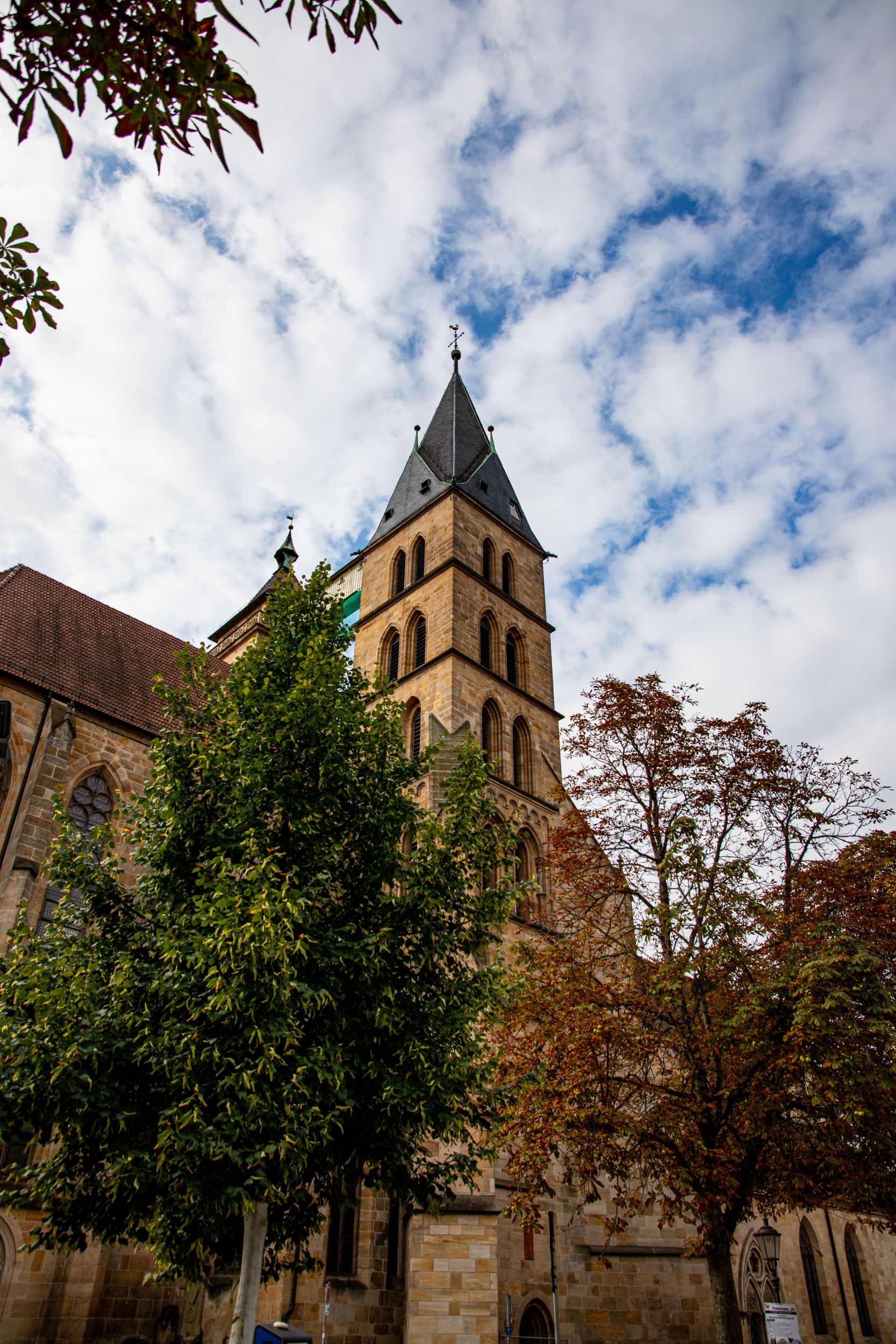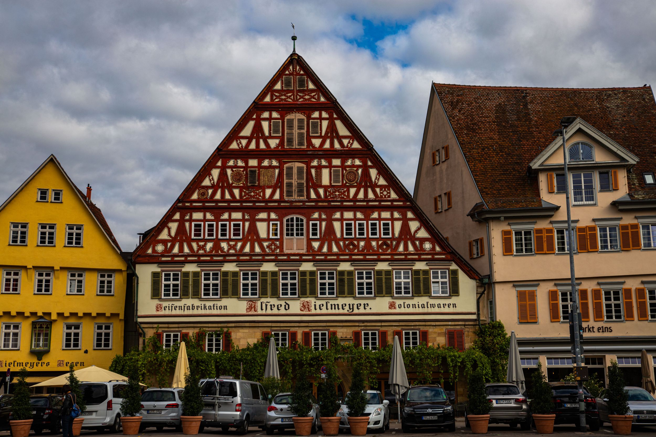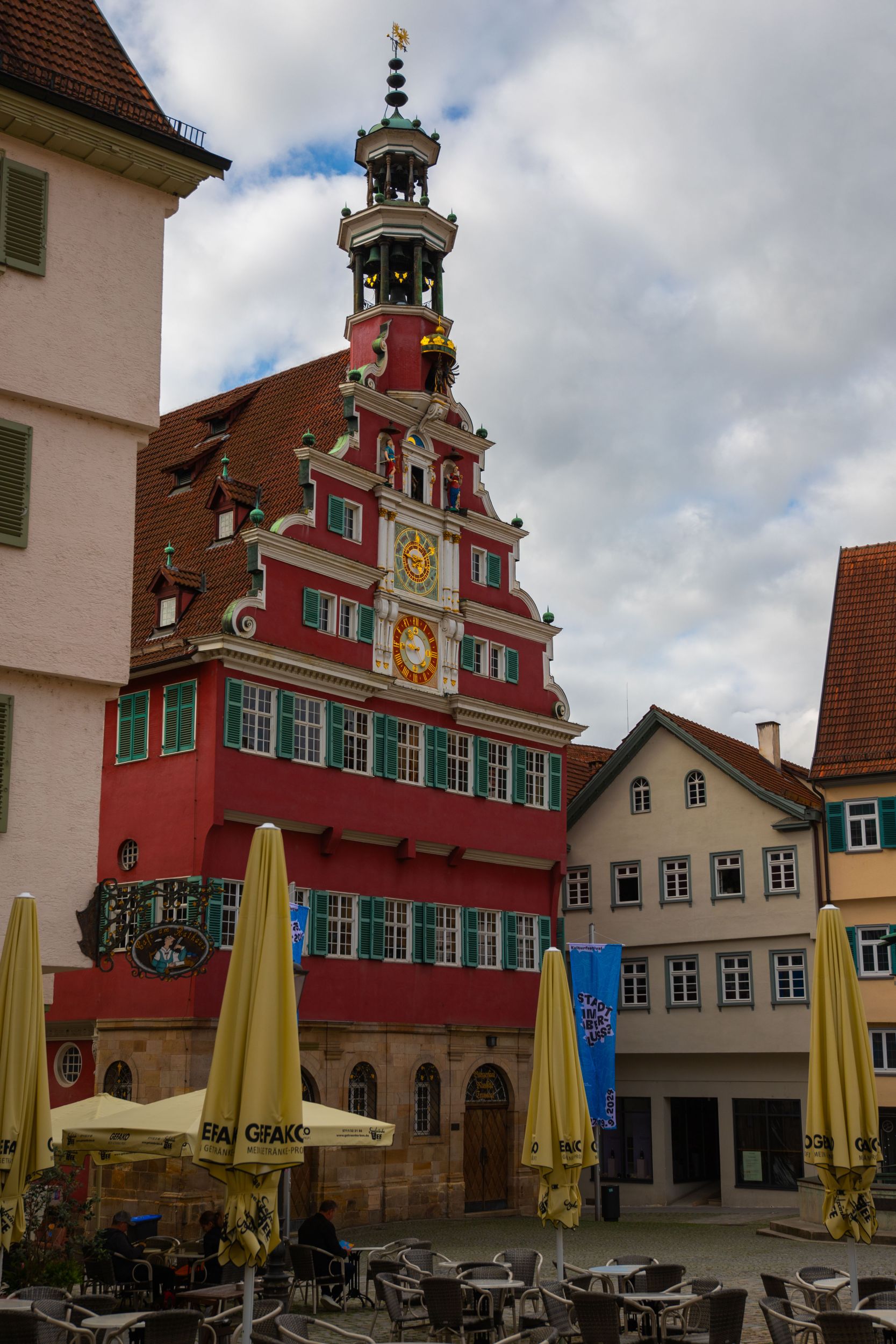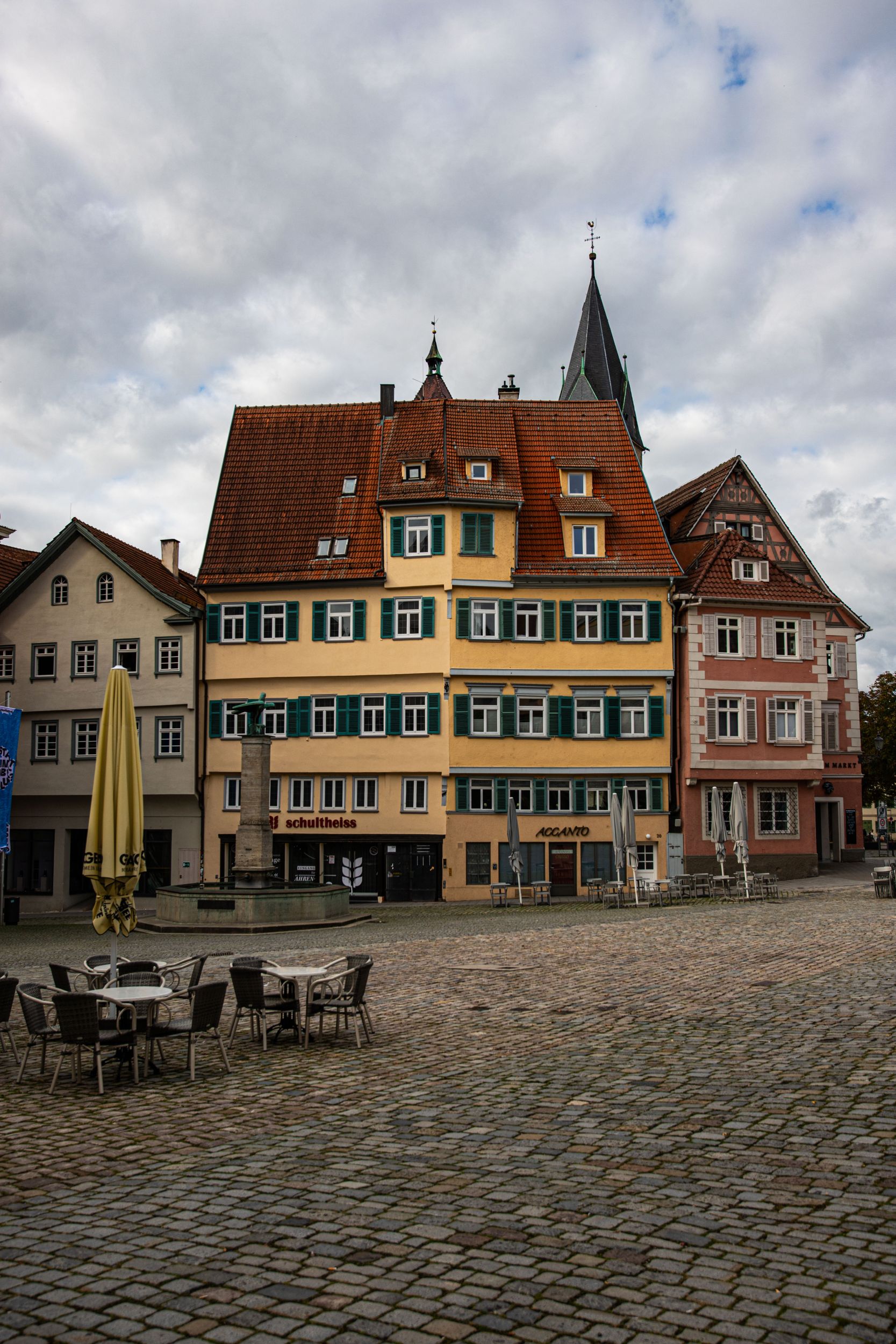 Der Marktplatz befindet sich vor der Stadtkirche St. Dionys. Hier laden einige Cafés zum Verweilen ein.